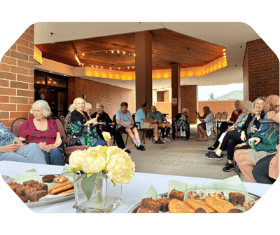 People linger over breakfast most mornings. Our chef really does shop the farmer's market. The conversation is too good to leave. Coffee gets refilled as stories get told. Some residents head back to apartments where staff will help with morning routines. Others walk to the library for poetry group.